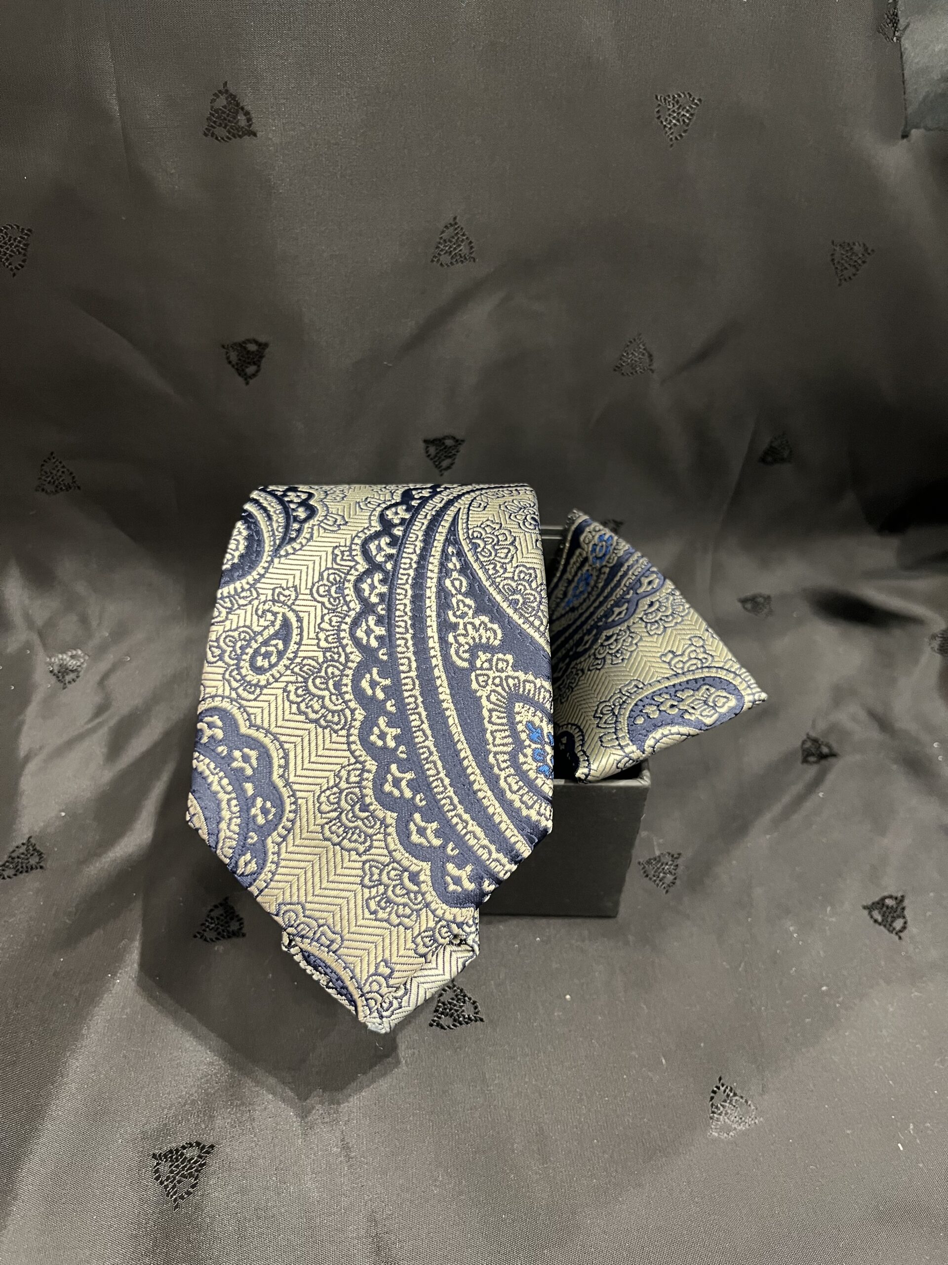 Be the first to review “Benetti Navy and Gold Paisley with Hankey”