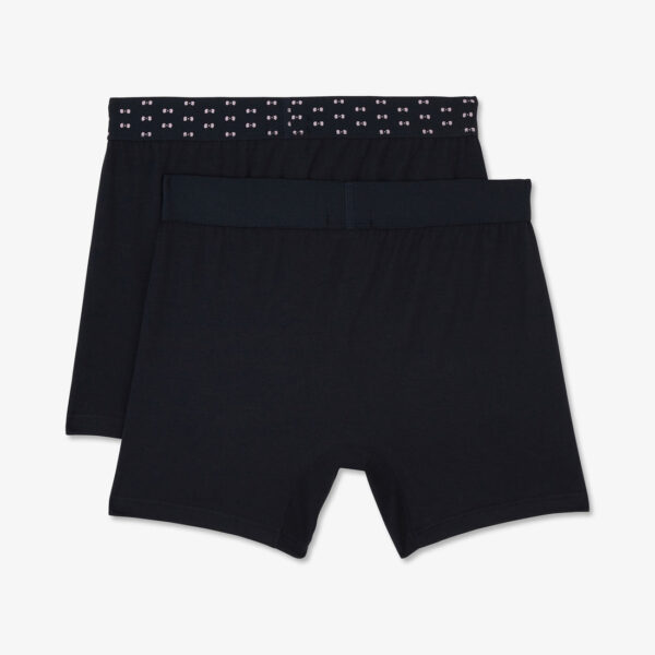 Pack of 2 navy blue boxers, one plain and one with bow ties.