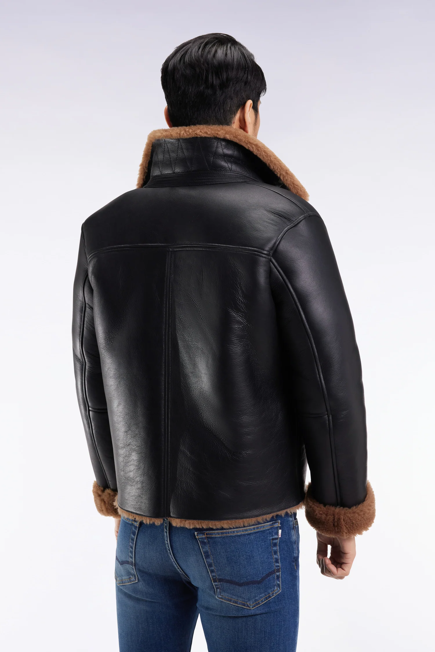 Eden Park Black Sheepskin Jacket with Brown Collar H25PAMBL0018
