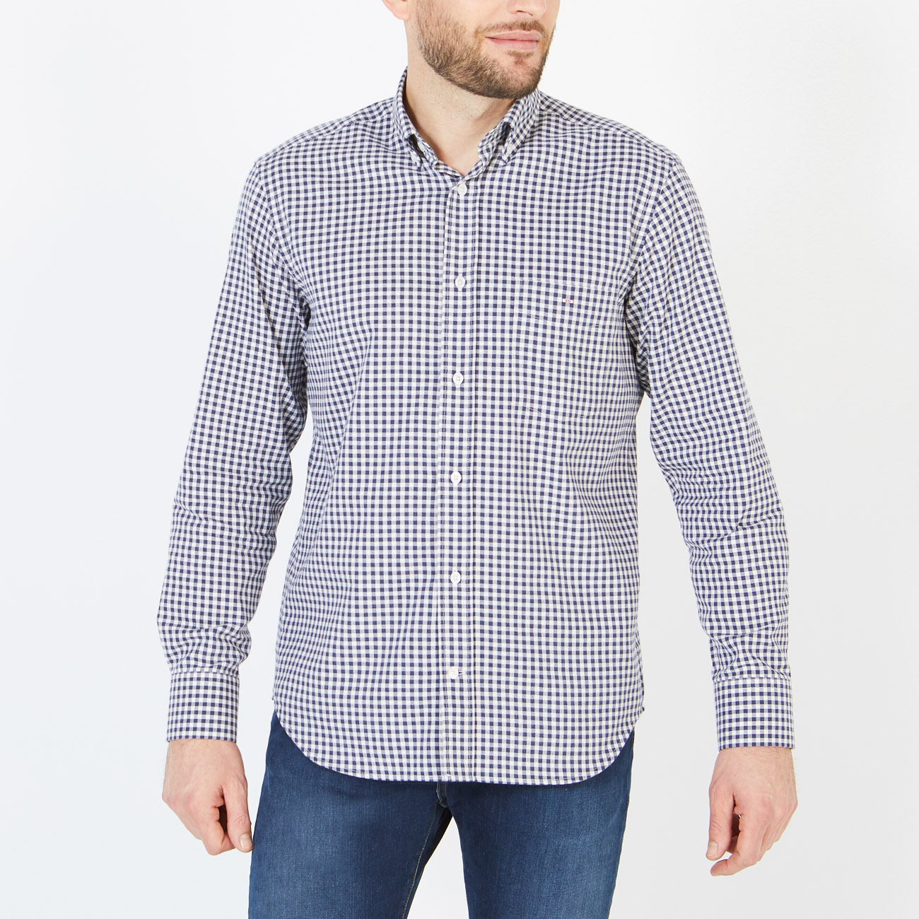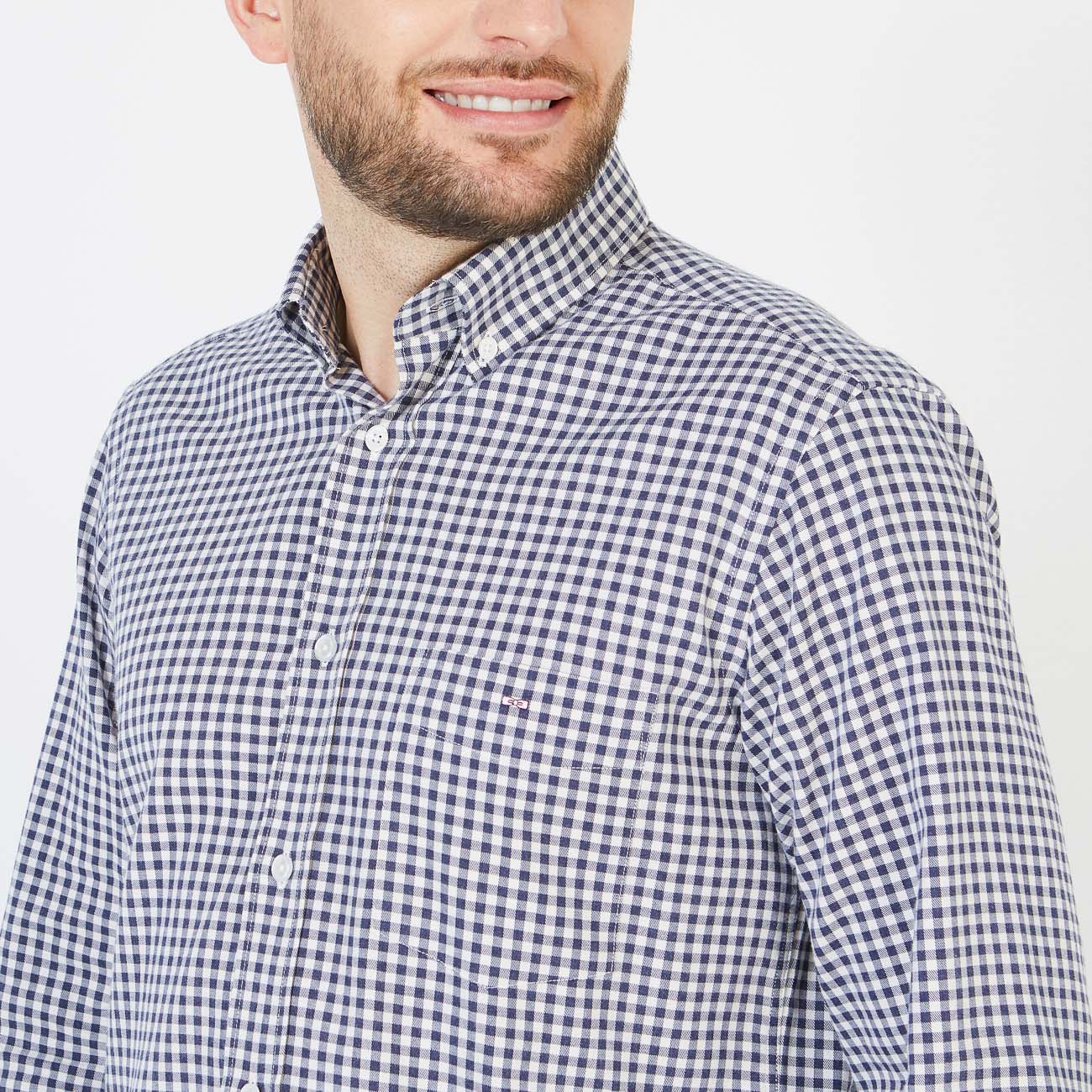 Woven in soft, lightweight cotton, this shirt features a gingham check that conceals a patch pocket on the breast