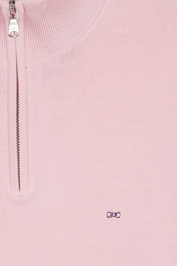 Available in pink or sky blue, two of our signature shades, this men’s trucker collar jumper is a must-have in the men’s vestiaire. Made from pure cotton, it offers both softness and functionality, highlighted by a contrasting navy zipped collar for a sporty yet refined touch. Thoughtfully finished with ribbed trims at the cuffs and hem, this piece ensures a flawless fit. Perfect for creating either a casual or dressy outfit, it stands out for its timeless style and superior comfort.